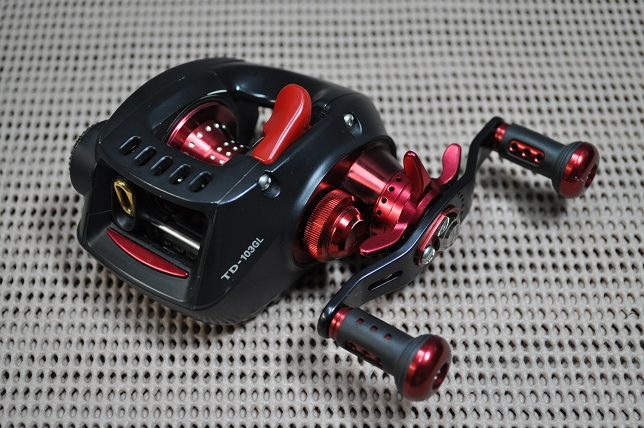 【ダイワ×バレーヒル TD-103GL RZ】の詳細です。 こちらはお客様のリールを拝借したものです。 ・『ダイワ TD-Z103HL TYPE-R+』をベースにクランクハンドルやアルミノブ、 スティーズ103サイズのスプール(オリジナルカラー)が標準装備されています。